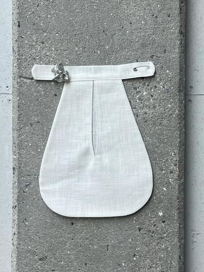 Cecilie and I meet online to discuss the text. We worry that, having just had a child and therefore unable to think about anything else, I will accidentally skew the narrative of the show. ‘We have to keep it a little sexy, nothing too maternal.’ Cecilie has commissioned a series of tie-on pockets to be made in silk. She holds one up to the camera and we both examine it. It is delicate and deeply serious, ‘Oh but it is a mother,’ we despair.